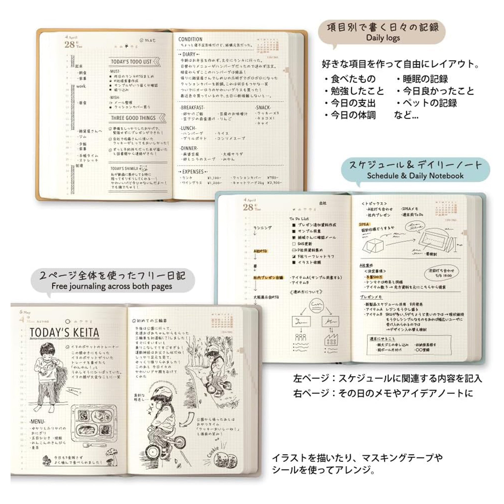 The Midori Hibino 2026 A6 Daily is a planner, diary, and notebook in one. Designed around a generous “2 pages per day” format, it gives you enough space to capture both your schedule and everything that happens in your day. Each spread can be split however you like—plans on the left, reflections on the right; work vs. personal; logs vs. diary—so you can build a layout that fits your lifestyle.