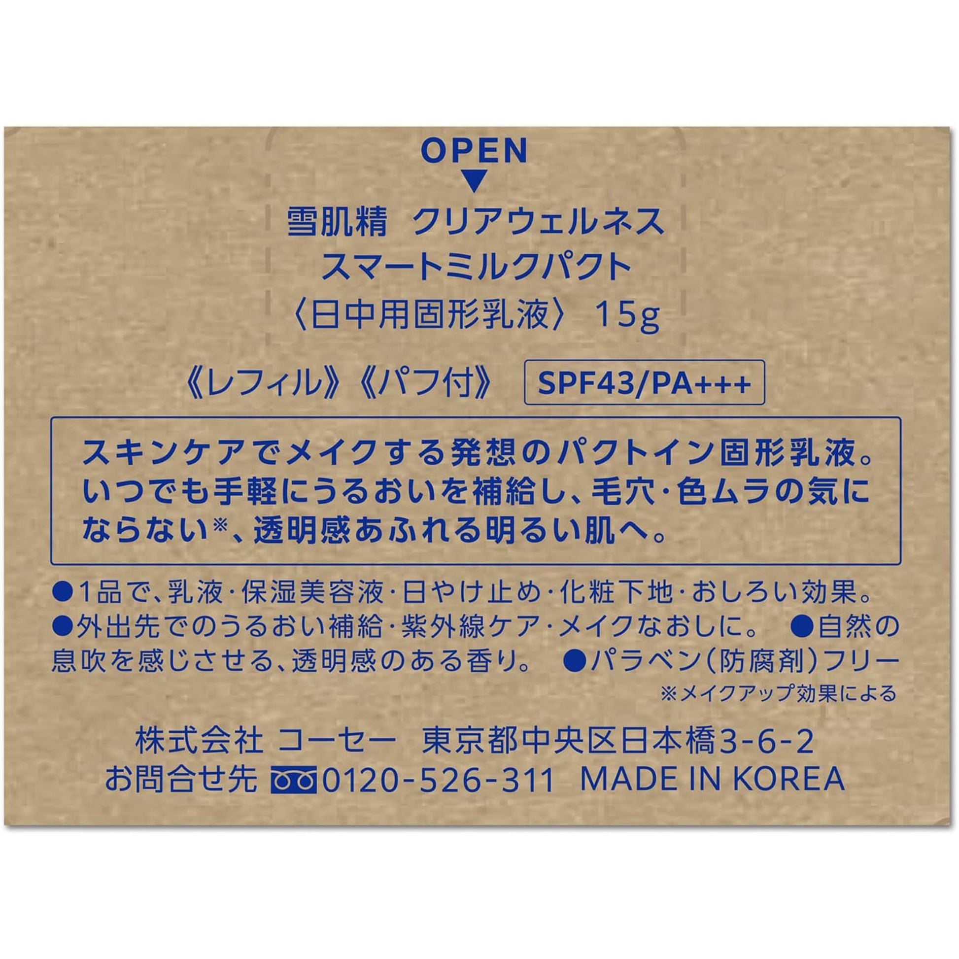 Sekkisei Clear Wellness Smart Milk Pact SPF 43/PA+++ – Hydration, Sun Protection & Makeup