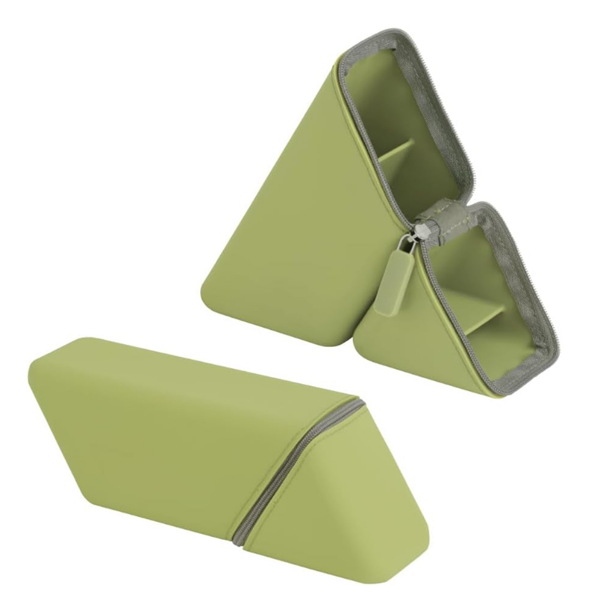 A soft silicone pen case that transforms into a stable standing pen holder. The 60° divider and magnetic tri-fold design keep 8–10 pens visible, organized, and easy to grab on any desk, at school, work, or on-the-go.